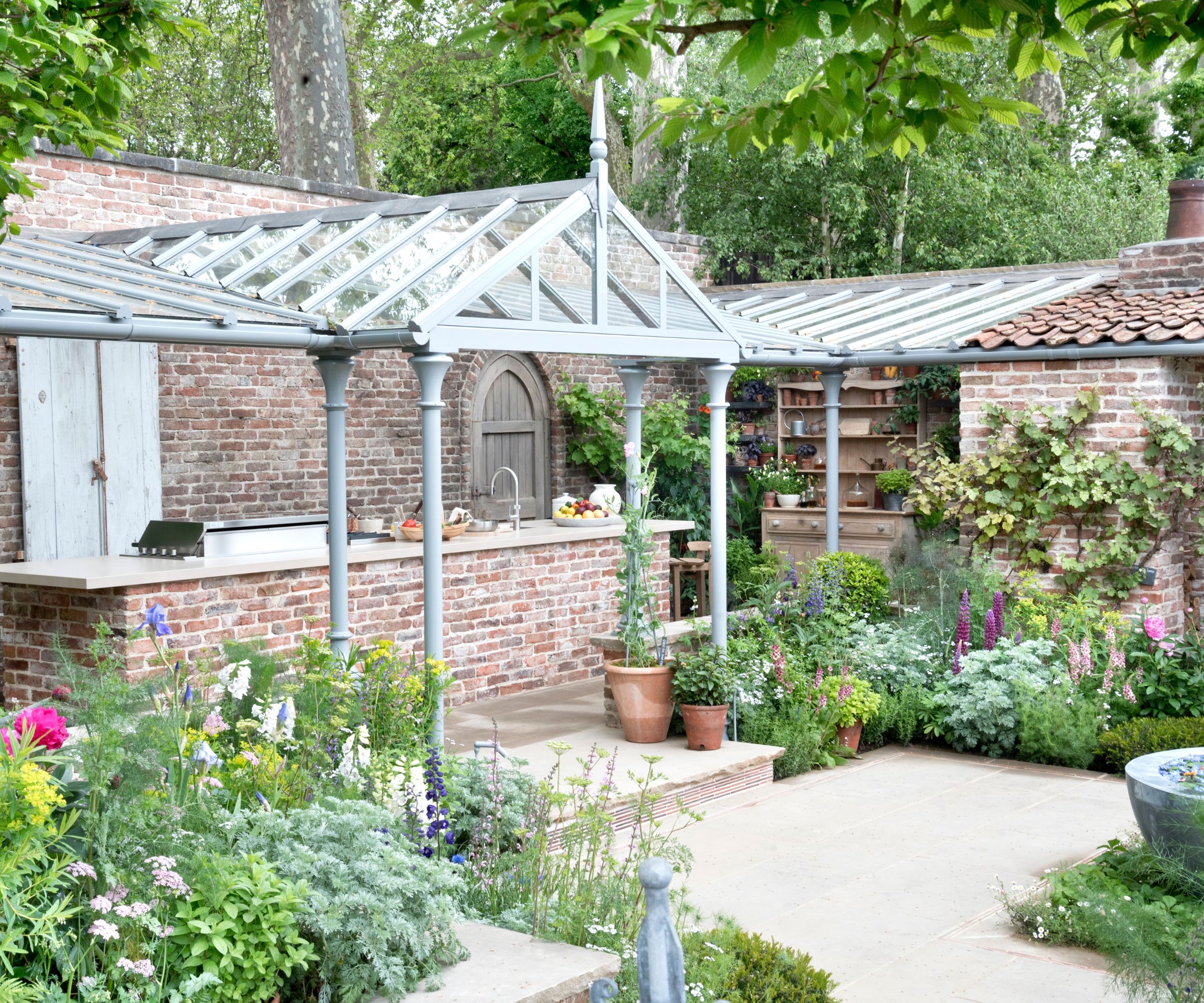 오래된 물건을 재활용하고 자연 식물에 집중함으로써 시골집 정원은 더 지속 가능한 공간이 됩니다.
